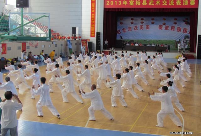 8月10日,为推动和促进齐市地区武术健身运动的开展、增进齐市武林界朋友们的友谊,由富裕县文化广电体育旅游局主办、富裕县武术协会承办的2013富裕武术交流表演赛,在当地南体育馆举行,齐齐哈尔市武术协会、富拉尔基区武术协、讷河市武术协会、泰来县太极拳协会、齐齐哈尔市鹤城武术俱乐部、齐齐哈尔市轩德太极拳俱乐部、齐齐哈尔市运建园太极拳协会等,分别派出代表队参加,与富裕县武术协会共计190余人参加了武术交流表演赛。富裕县武术协会主席沈占德致欢迎词,富裕县文体局副局长刘海波讲话,齐齐哈尔市武术协会副主席吕连光到会致贺词,富拉尔基区武术协会主席张秉山代表来宾讲话。各代表队分别表演了集体、个人15个太极拳械套路,以及形意拳、八卦掌、少林拳、八极拳、连拳、散打对练等31个拳械套路。赛会为参赛运动员和代表队颁发了表演赛获奖证书。