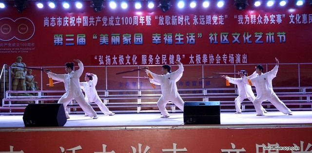 2021年 9月5日,在尚志市政府广场的百姓大舞台上,一场迎国庆尚志市太极拳协会专场演出拉开帷幕。尚志市太极拳协会126名拳友表演了杨式太极拳、陈式传统太极拳、太极扇、太极刀、太极剑、太极拂尘等节目,表现出太极拳的舒缓自如、轻灵沉稳等特点。各个辅导站带来的节目花样多,内容丰富。演出中还穿插了舞蹈、歌曲、朗诵、三句半等节目。