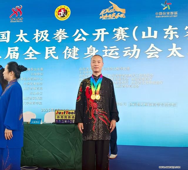 臧玉美女子D组,陈式49式太极剑8.78分第七名的成绩,金牌一等奖;杨式传统太极拳银牌二等奖。