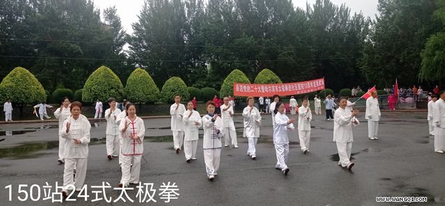 本次活动当天早晨,还下着小雨,但拳友们全然不顾天气的不利情况,纷纷提前赶赴会场。有人布置会场,有人扫去地上的雨水,有的拳友还特地带来了音箱,体现了工委的凝聚力、协会的凝聚力、太极拳的凝聚力。