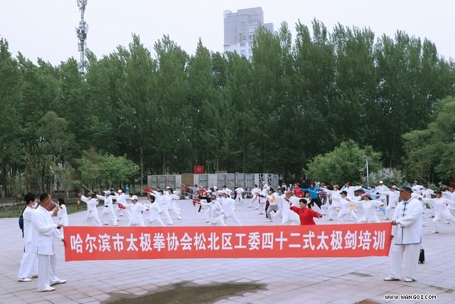 为进一步推广普及太极运动进社区,哈尔滨市太极拳协会松北区工作委员会于2023年5月20日上午,在松北区中心公园举办四十二式太极剑集中培训活动,全区10个太极拳辅导站近200人参加了此次培训。