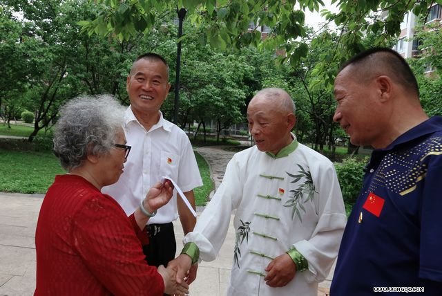 随后,大家集体演练了二十四式简化太极拳,工委各辅导站踊跃上场,进行了太极拳、太极器械和健身气功的展演,88岁高龄的抗美援朝老英雄何运轩也兴致盎然地参加了表演,整个活动持续了两个小时,大家仍意犹未尽。纷纷表示,通过这次活动,更加珍惜今天的幸福生活来之不易,加深了爱党爱国的情怀,同时也展现出我们太极人的风采,坚定了持之以恒练拳的决心,为全民健身运动做出表率。