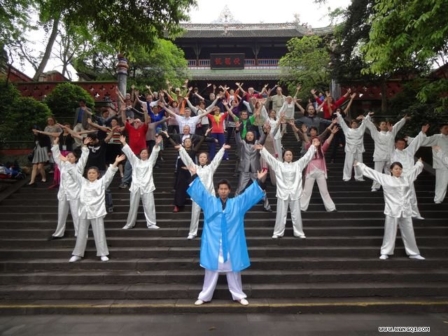 由于今年是中法建交50周年,故于18号上午由法国东方文化中心与青城武术研究会联合举行了中法建交50周年纪念活动,来自精神文明报社、都江堰市政协、青城武术馆、青城棋院、都江画院、养生杂志社、四川省养生文化研究会、世界养生大会四川委员会、山东潍坊市武术协会和法国东方文化中心等中外来宾60余人参加了此次活动。青城武术馆向柯文女士授予青城武术馆国际推广大使,法国卫生部官员弗朗西斯、法国气功联合会主席多米尼克分别表态:回国后将向法国卫生部与体育部推介青城太极养生文化,法国气武道太极学院院长达尼埃说他在青城山见到了他以前没有见过的青城太极,并喜欢上了青城太极,他们都希望刘绥滨能再次到巴黎讲学,