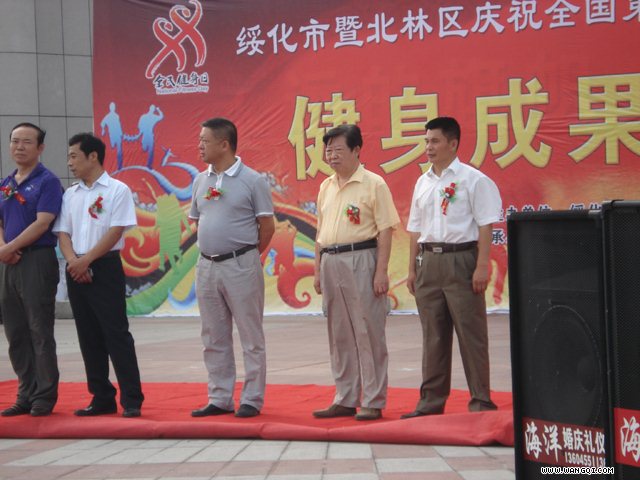 八月流火,体育生晖。健康生活,幸福和美。2011年8月7上午8时30分,由绥化市人民政府 北林区人民政府主办,绥化市体育局、绥化市体育总会、北林区文体局和绥化市老年保健协会承办的“绥化市庆祝全国第三个‘全民健身日’庆典活动开幕式暨健身成果展示大会”在府前人民广场隆重举行。