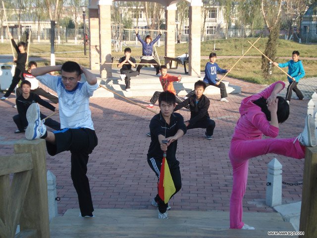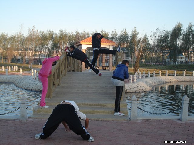 图9460、9472、9468为绥化学院大学生在九思湖畔练功掠影。