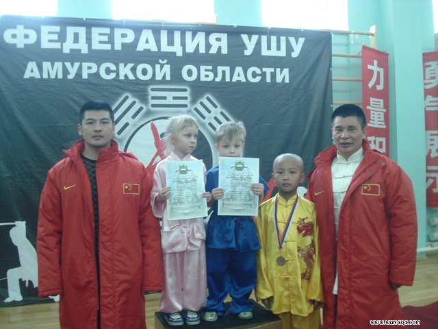 2012年1月19日下午三时,俄罗斯阿穆尔州首届“中俄青少年武术冠军赛”及“中俄青少年武术交流活动”在俄罗斯阿穆尔州首府——布拉戈维申斯克市青少年宫圆满落下了帏幕。来自中国和俄罗斯的近百名运动员参加了武术比赛。出席阿穆尔州首届“中俄青少年武术冠军赛”开幕式的俄罗斯阿穆尔州对外经济联络、旅游与商业部,教育与科学部的领导和嘉宾有:代理部长利什塔耶娃,阿穆尔州青少年宫主任里里娅,副主任斯拉瓦和黑河市中俄友好协会秘书长刘群及中俄新闻媒体的朋友,俄当地各界代表及武术爱好者280多人参加了首届“中俄青少年武术冠军赛”开幕式的系列活动。