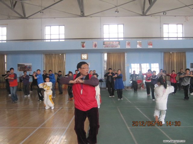 5月16日,在齐齐哈尔市富拉尔基区和平小学体育馆内,来自全区25所中小学校五十多名体育教师,专心致志地跟随武术教练学习少儿24式太极拳,这就是富拉尔基区教育局举办的“全区中小学体育教师少儿24太极拳培训班”。这次活动是由区教育局举办,区武术协会协办,并作为全区体育教师岗位培训的正式内容进行考核。