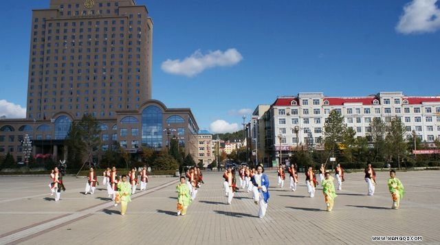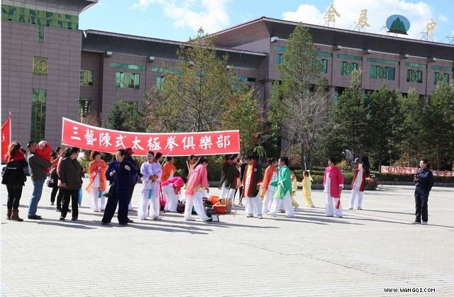 十月一日,这个秋高气爽,阳光明媚的国庆佳节,在大兴安岭加格达奇新世纪广场上洋溢着浓郁的节日气氛,为庆祝中华人民共和国成立64周年,上午10时,大兴安岭太极拳协会三艺陈式极拳俱乐部与东山太极拳分会,在这里联合举行了一场“热爱祖国,弘扬太极”为主题的太极拳表演活动。他们以整齐的队型,靓丽的服装,精彩的表演展示了太极拳、剑、刀、扇即有健身性又有观赏性的博大精深的运动项目,这场表演得到了山城百姓的一致称赞和好评,特别是站在队伍前面的四位小朋友,柔中有刚的拳架中,和后面大朋友快慢相间的配合,充分表现了太极拳的松活弹拌、缠绕折叠、蓄发互变的特点。下面请观看这场表演的图片纪实: