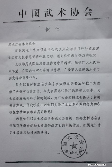 黑龙江省太极拳协会关于高