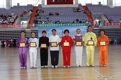 经过三天角逐,哈尔滨市太极拳协会代表队42式太极拳、哈尔滨市呈祥武术俱乐部吴式45式太极拳、五常市太极拳协会一队陈式传统太极拳、东宁县陈式太极拳俱乐部陈式传统太极拳、哈尔滨市道里区第27太极拳辅导站一队杨式传统37式太极拳、大庆市太极拳协会七队陈式传统太极拳、哈尔滨市太极拳协会代表队陈式传统太极拳、哈尔滨市陈式心意混元太极拳研究会混元24式太极拳、大庆市太极拳协会八队陈式传统太极拳和哈尔滨市太极拳协会高龄组杨式40式太极拳等25支代表队的集体项目荣获集体项目太极拳类一等奖;东北轻合金公司太极拳协会组合太极刀、哈尔滨市呈祥武术俱乐部吴式太极剑、牡丹江市武术协会三队武当太极小花剑、木兰县太极拳协会太极响扇、通河县太极拳协会太极功夫扇、苇河林业局太极拳协会32式太极剑、哈尔滨市香坊区第63太极拳辅导站华武太极扇和铁力市太极健身协会太极功夫扇等8支代表队的集体项目荣获集体项目太极器械类一等奖。荣获男子十佳运动员的是:哈尔滨市太极拳协会姜学森、曹德贵、蒋玉彬,牡丹江树山训练基地二队郑树山、佳木斯市一队张佳利、哈尔滨市南岗区一队龚孝德、牡丹江市武术协会一队尹长春、哈尔滨市太极拳协会一队宋晓辉、富锦市太极拳协会李志和牡丹江市太极分会郎振明;荣获女子最佳运动员的是:哈尔滨市太极拳协会香坊区第63太极拳辅导站朴卿惠、牡丹江市武术协会六队赵秀娟、哈尔滨市道里区一队赵淑梅、哈尔滨市道里区第69太极拳辅导站张淑艳、牡丹江市武术协会六队陈新、北大荒红兴隆农场赵宇霞、牡丹江市武术协会二队张勇、哈尔滨市香坊区四队董学琴、双鸭山市太极拳协会赵以皎和五常市太极拳协会付丽。
