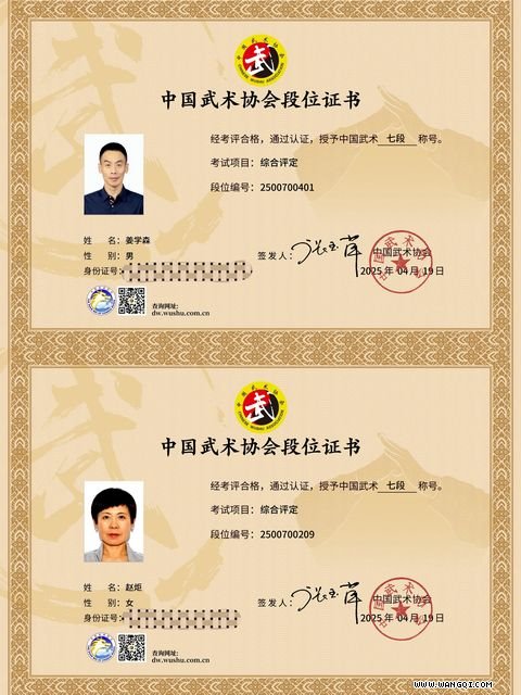 4月19日,欣闻黑龙江省太极拳协会太极拳高级教练员姜学森、赵炬两位太极拳传承人凭借深厚的武学造诣,经中国武术协会严格评审,晋升中国武术七段。