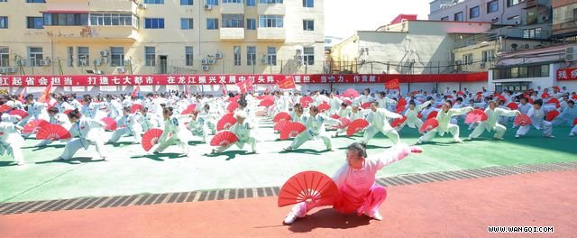 太极功夫扇挥出虎虎生风之势,表演者们动作整齐划一,一招一式都彰显着太极神韵。