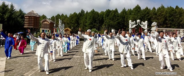 绥化市武术运动联合会主席潘跃喜同志介绍:这次武术·太极拳交流展演大会,得到了地方广大武术和太极拳爱好者的积极响应。参加展演大会的100多名太极拳、武术爱好者来自全市10个县(市、区),他们是基层站点的精英和骨干,全市350多个晨晚辅导站点都有国家授予的社会体育指导员,为推动绥化市全民健身事业的发展,发挥了应有的作用。