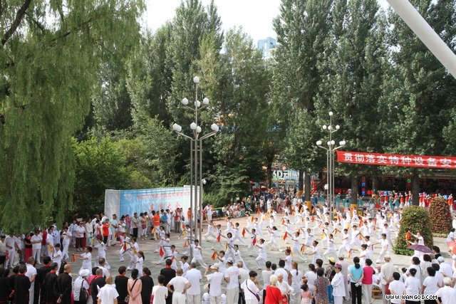 此次太极拳展演大会与我省“全民健身挑战日”活动同日举行。“挑战日”活动主会场上,来自市太极拳协会表演队的百名队员,潇洒自如、勇猛刚劲地表演了36式太极刀,为全民健身活动精彩助力。分会场上暨南岗区太极拳进社区展演大会会场,在历时近两个小时的15个节目表演中,陈杨吴孙各式太极拳、拳械组合、段位拳、太极扇、养生太极舞、养生功夫扇和健身气功八段锦等各类表演,精彩纷呈,夺人眼目,表演队的靓丽表演获得了观众的热烈掌声。