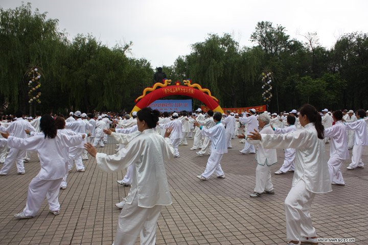 广大太极拳爱好者表演了绚丽多彩的太极拳械节目,但天有不测风云,有些节目冒着小雨表演,后因雨下的越来越大被迫中断表演。